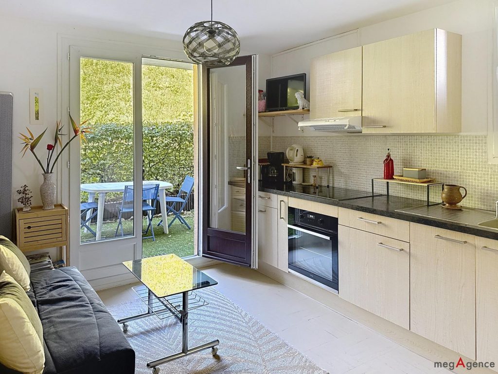 Studio en RDJ de 25 m² avec un extérieur de 20 m². Dispose d’une chambre fermée et d’une cuisine équipée – vendu meublé. Résidence « les Centaurées ».